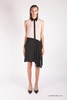 Sleeveless shirt dress with contrast front bodice. Back is all black. Button through front. A-symetric left front hem. Pockets in side seams. 100% Viscose. Approx 100cm from shoulder to hem.